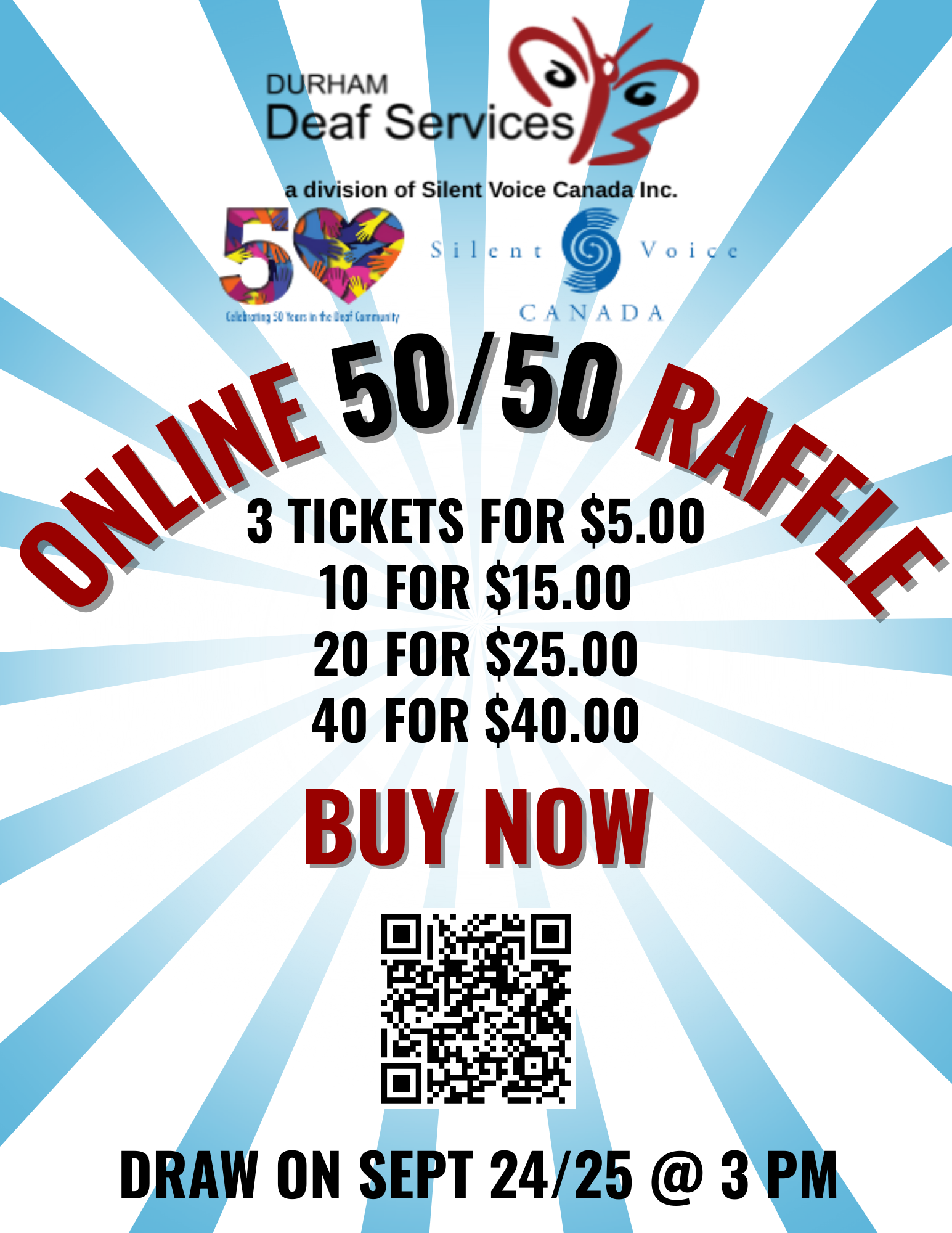 Durham Deaf Service, a division of Silent Voice Canada, is hosting the 3rd Online 50/50 of this year! Ticket prices start at: 3 for $5.00, 10 for $15.00, 20 for $25.00, and 40 for $40.00! The Raffle opens September 1st at 8:30 AM and closes on September 24th at 12PM, and the draw will happen […]