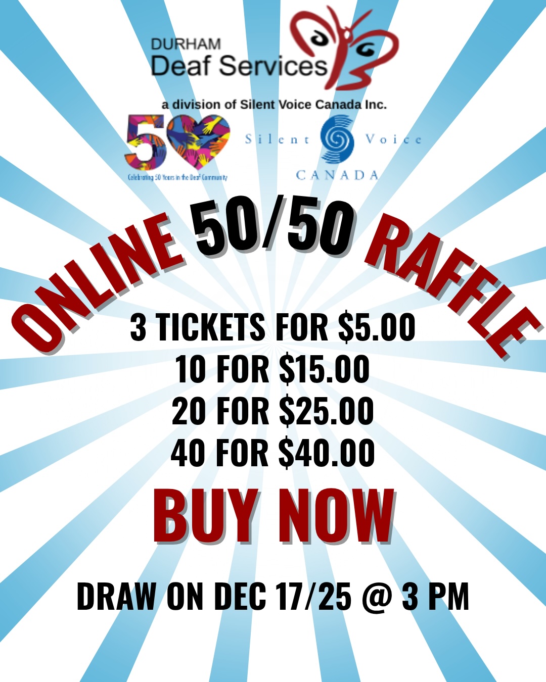 Durham Deaf Services, a division of Silent Voice Canada, fourth and final Online 50/50 Raffle Fundraiser is now OPEN! Grab your tickets now here! 3 tickets for $5.00 10 tickets […] |