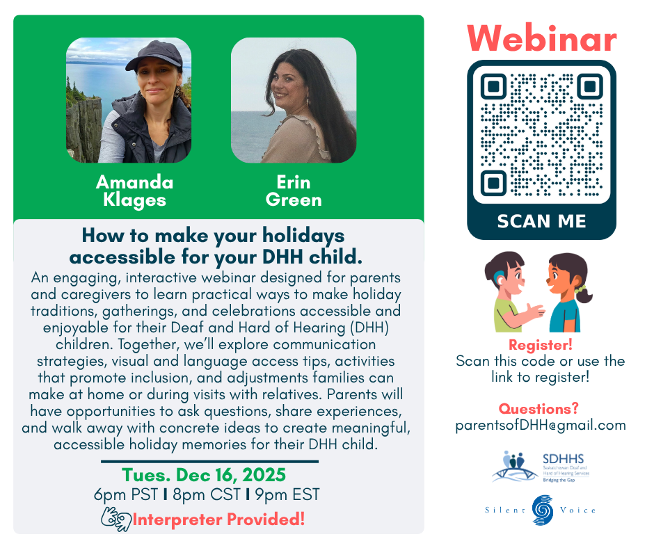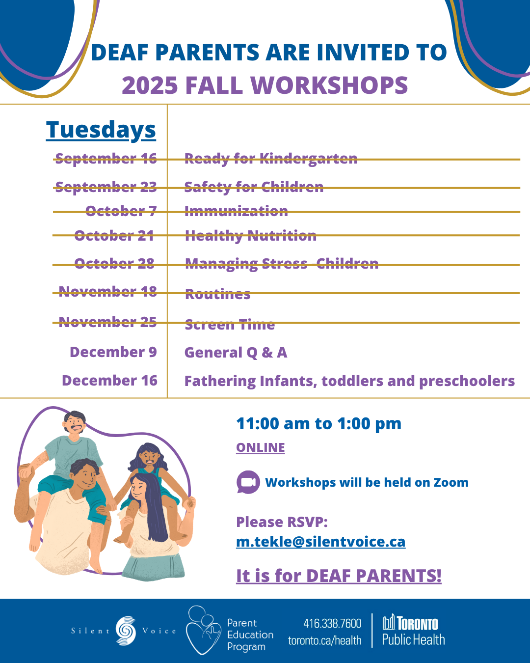 Do you have questions and want answers? Come and join us at the workshop! This workshop is for Deaf Parents only. When: Tuesday, December 9, from 11 am to 1 […] |